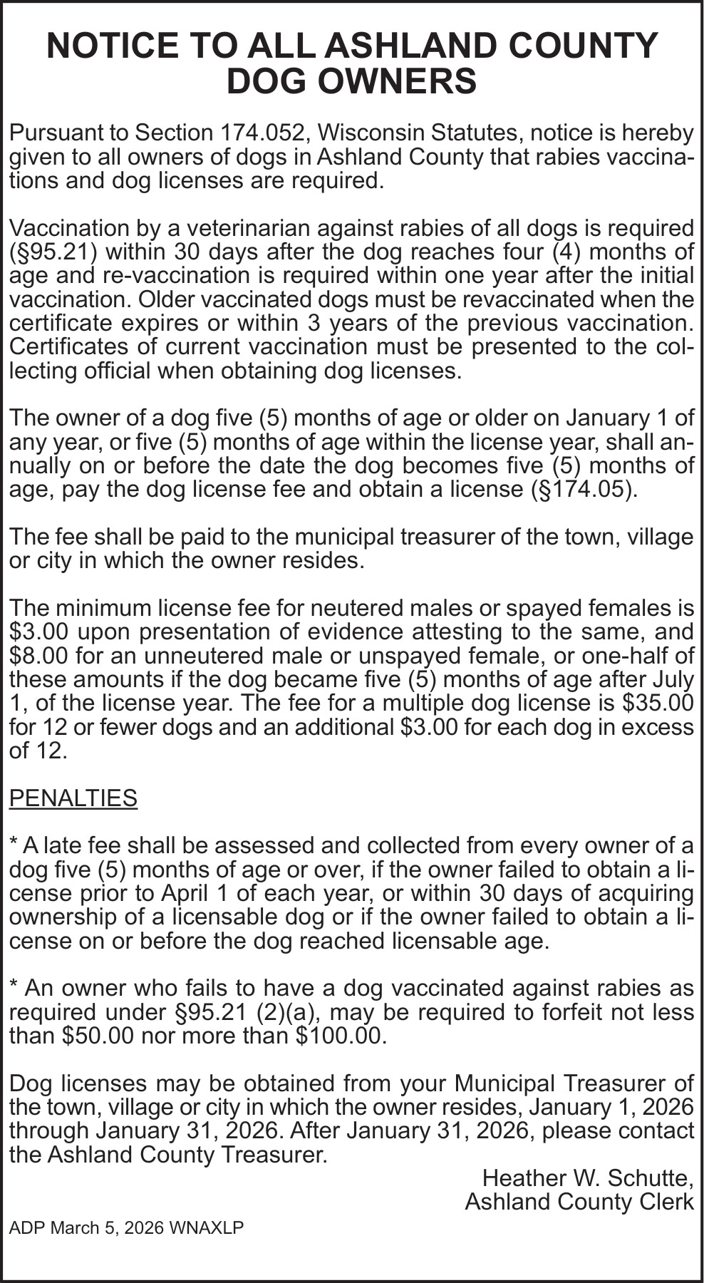 Public Notices in Ashland, WI