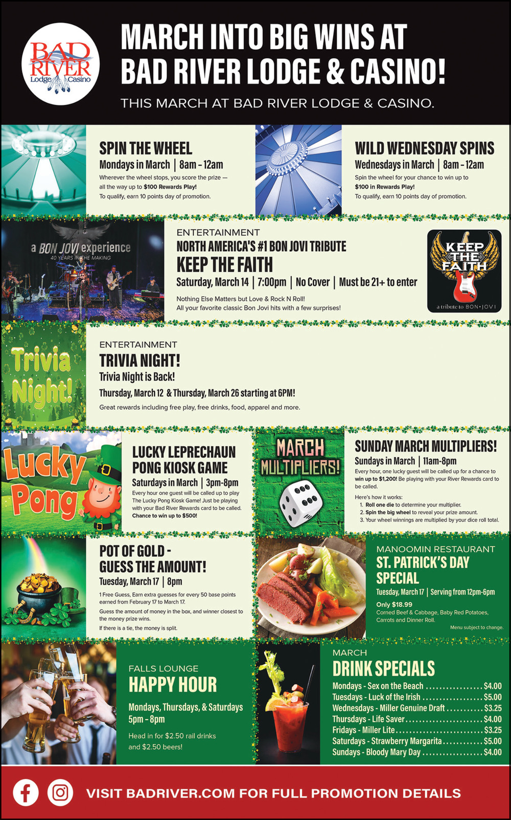 March Into Big Wins at Bad River Lodge & Casino!