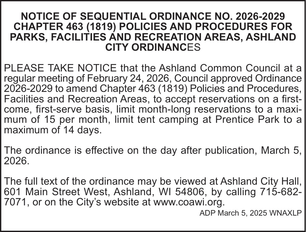 Public Notices in Ashland, WI