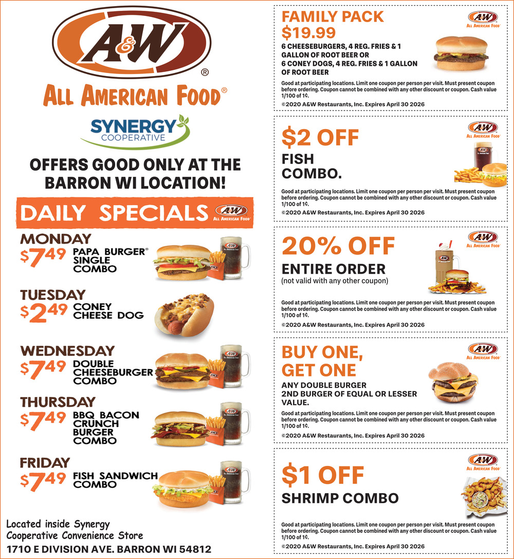 Mar 06, 2026. A&W - Barron Restaurants Ads from Rice Lake Chronotype