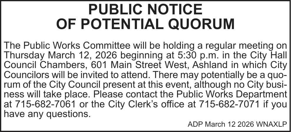 Mar 12, 2026. City Of Ashland Public Works Department Public Notice Ads from Ashland Daily Press