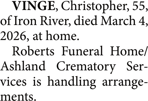 Obituary in NORTHWESTERN WISCONSIN