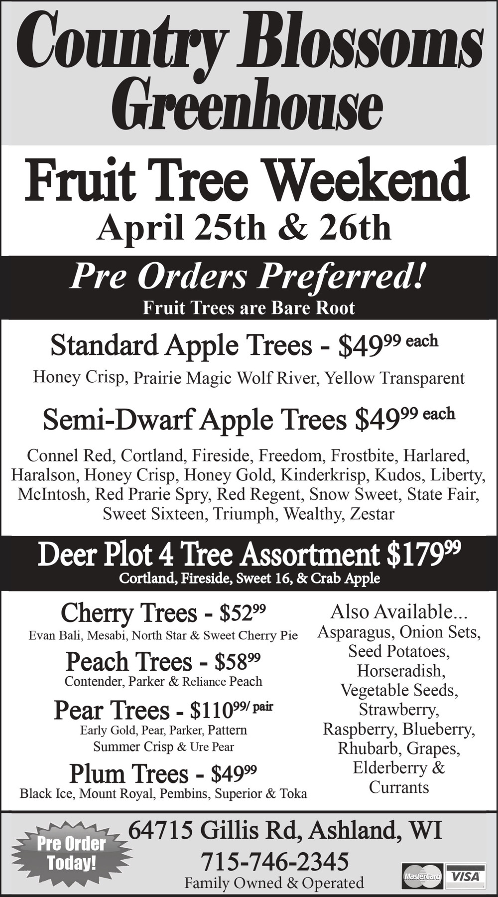 Ads for Country Blossoms Greenhouse in Ashland, WI