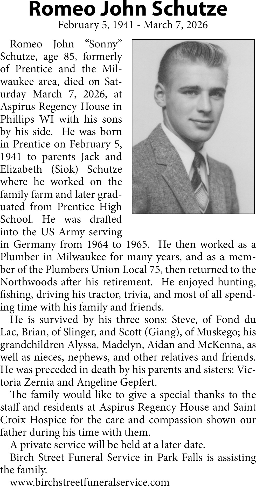 Obituary in NORTHWESTERN WISCONSIN