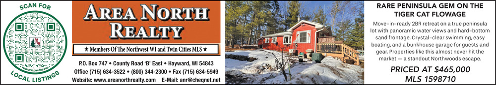 Mar 25, 2026. Area North Realty Real Estate Ads from Sawyer County Record