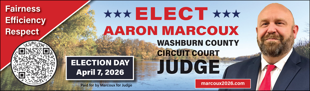 Mar 26, 2026. Aaron Marcoux for Washburn County Circuit Court Judge Government Ads from Spooner Advocate