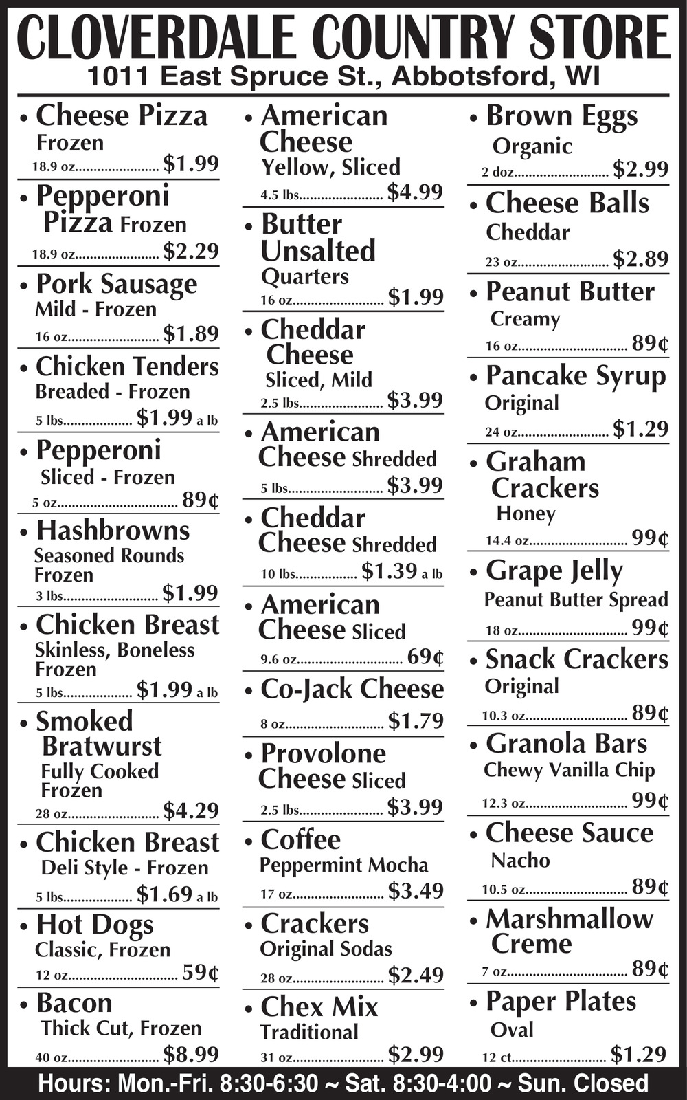 Mar 26, 2026. Cloverdale Country Store Grocery Stores & Markets Ads from Price County Review