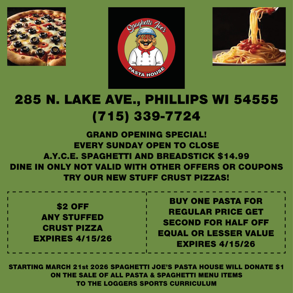 Mar 26, 2026. Spaghetti Joe's Restaurants Ads from Price County Review