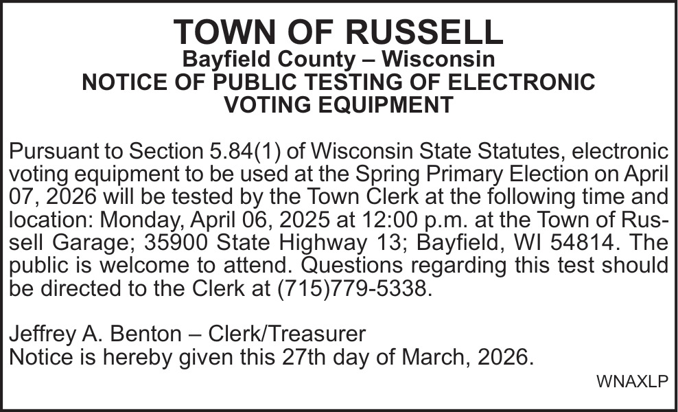 Mar 26, 2026. Town Of Russell Public Notice Ads from Ashland Daily Press