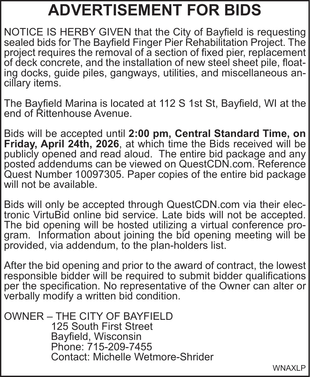 Mar 26, 2026. City of Bayfield Public Notice Ads from Ashland Daily Press