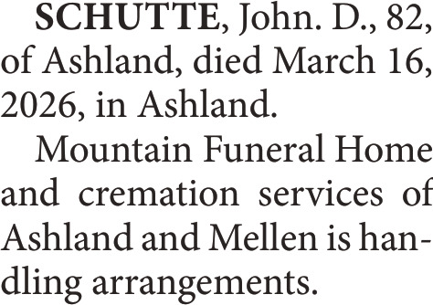 Mar 26, 2026. Obituaries Obituaries Ads from Ashland Daily Press