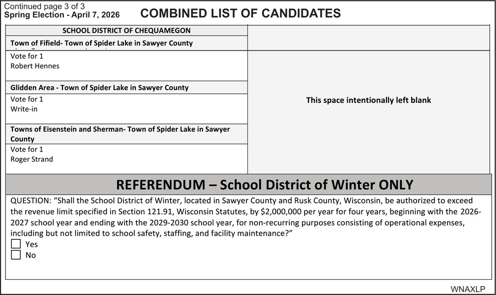 Apr 01, 2026. Sawyer County Public Notice Ads from Sawyer County Record