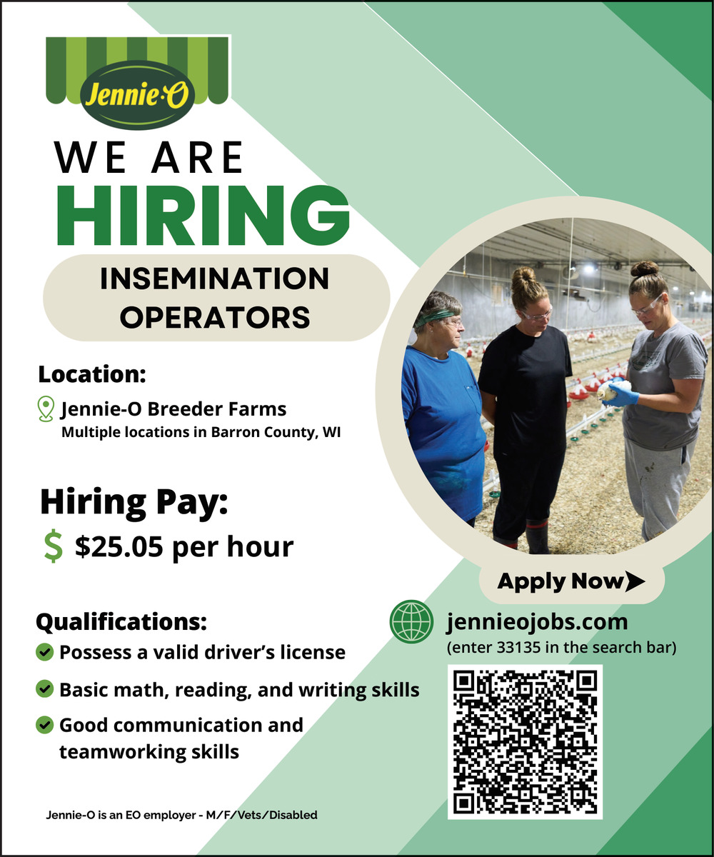 Apr 01, 2026. Jennie O Jobs Ads from Rice Lake Chronotype