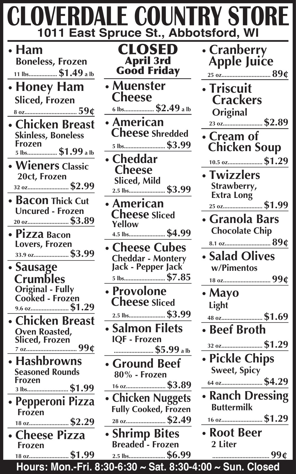 Apr 02, 2026. Cloverdale Country Store Grocery Stores & Markets Ads from Price County Review