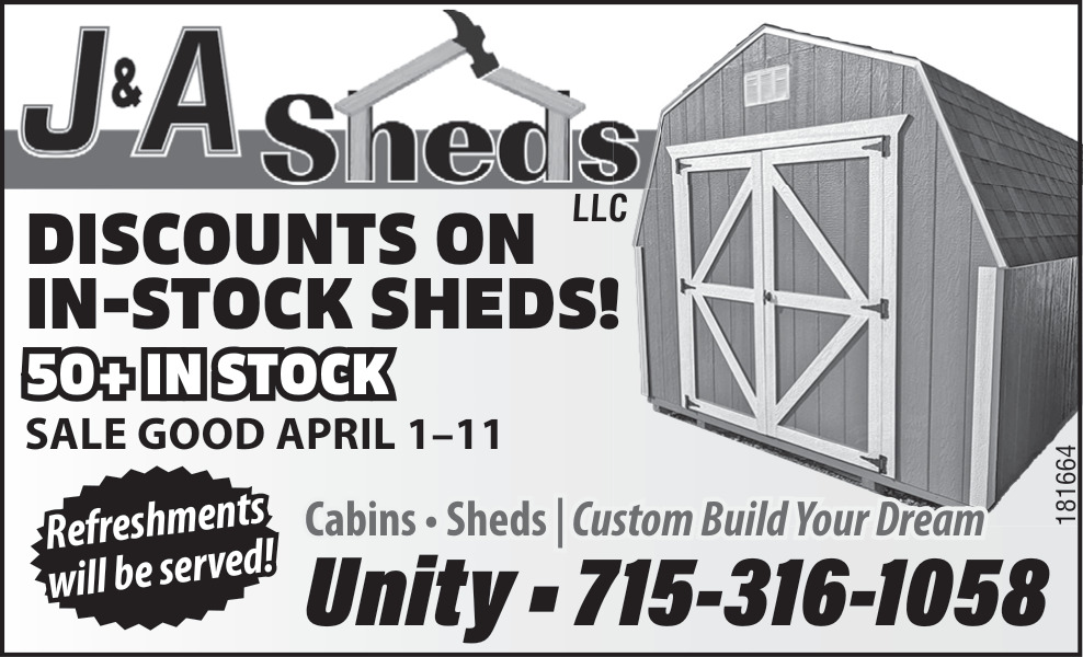 Apr 02, 2026. J&A Sheeds LLC Construction Ads from Price County Review