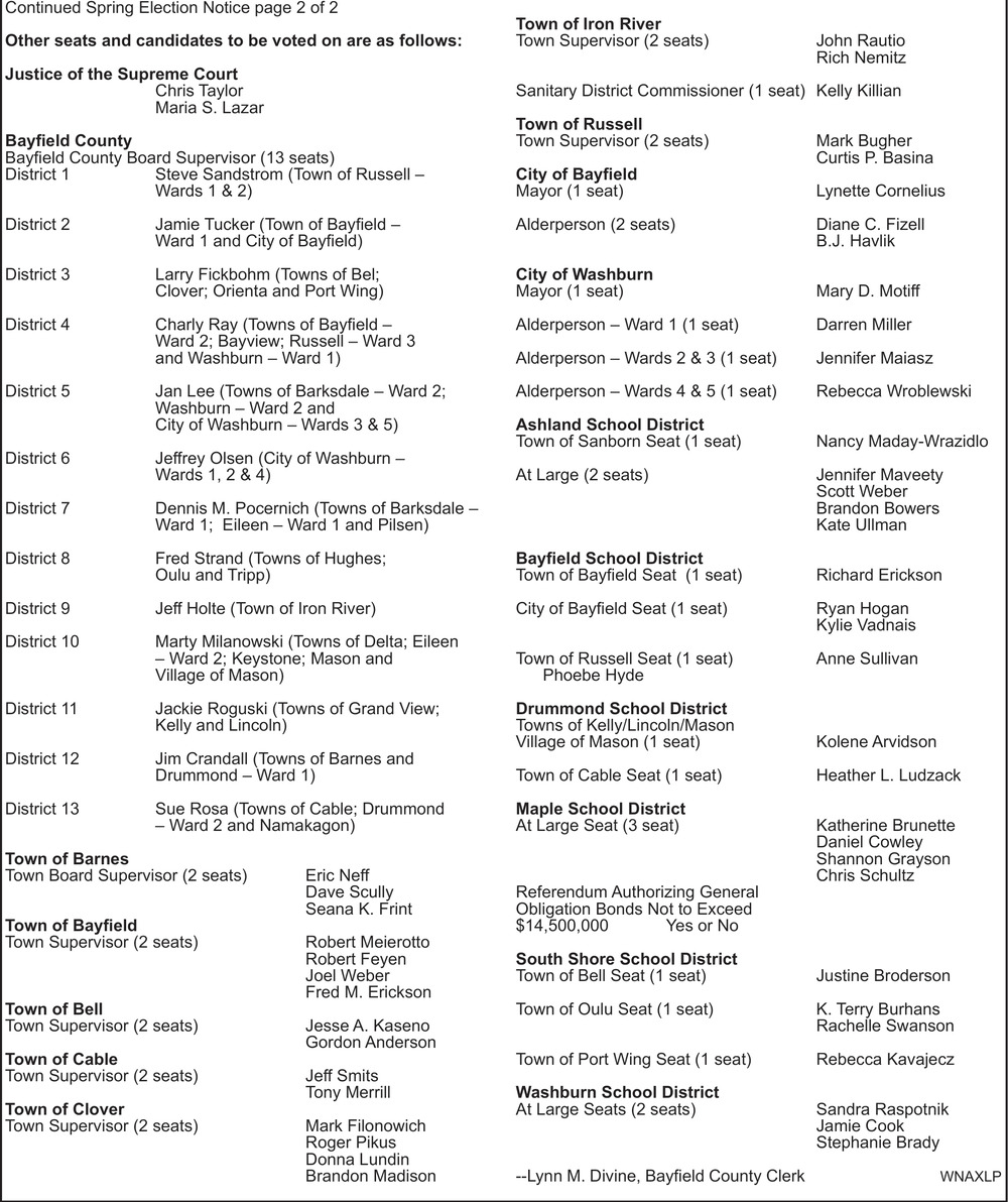 Apr 02, 2026. Bayfield County Public Notice Ads from Ashland Daily Press