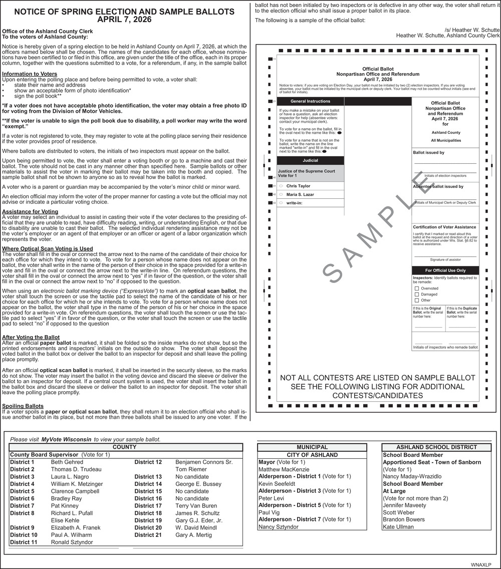 Public Notices in Ashland, WI
