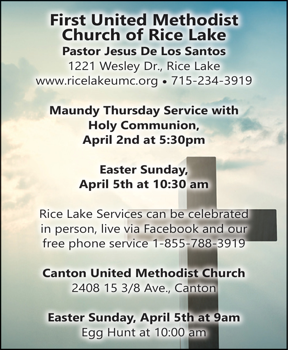 Apr 03, 2026. First United Methodist Church - Rice Lake Church Ads from Rice Lake Chronotype
