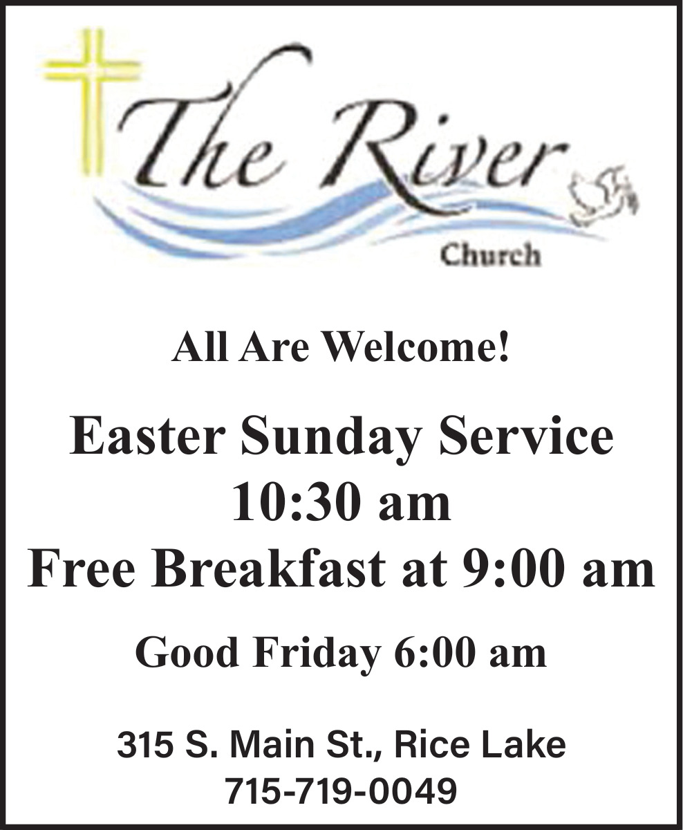 Apr 03, 2026. The River Church Church Ads from Rice Lake Chronotype