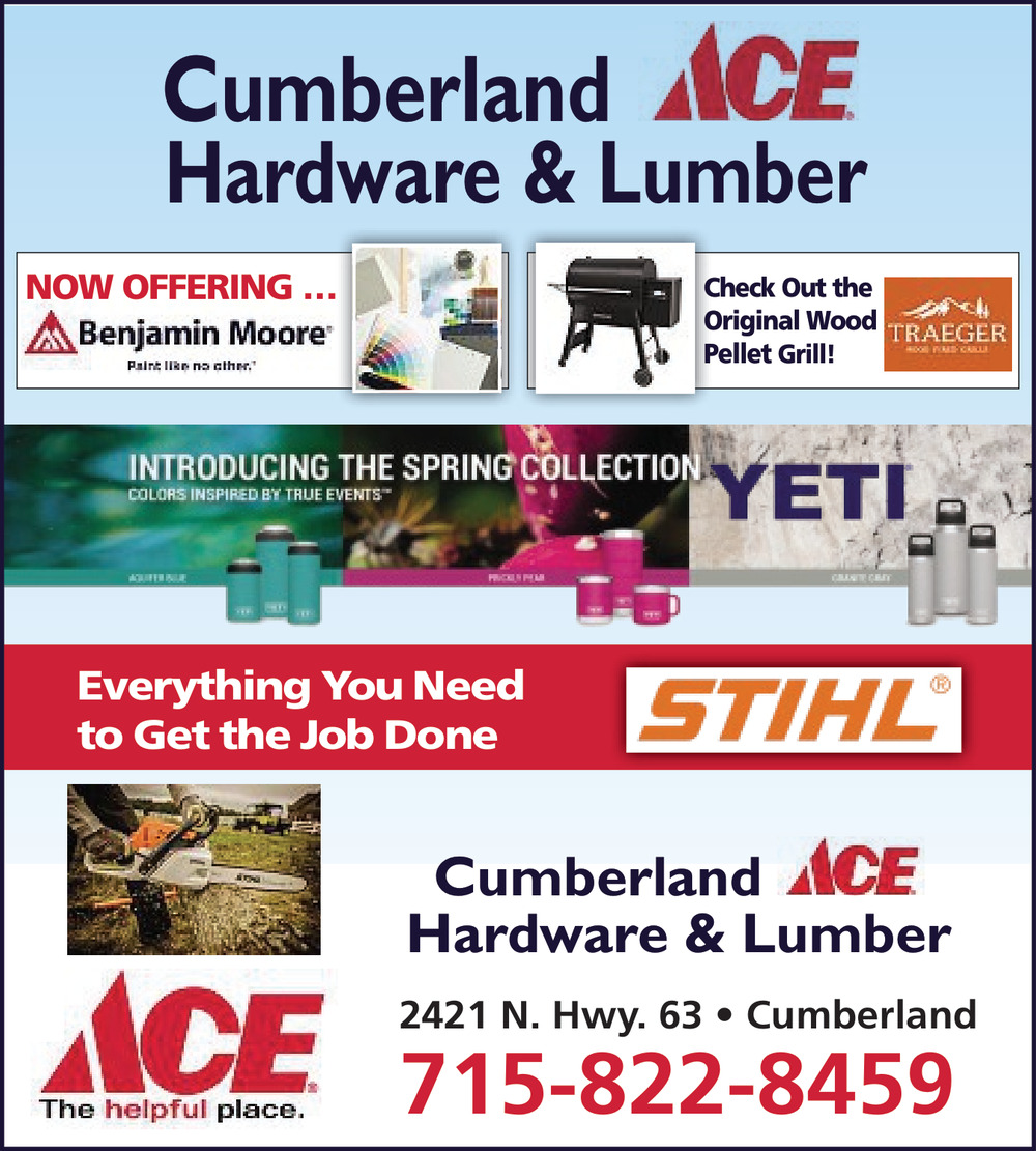 Apr 08, 2026. Cumberland Ace Hardware & Lumber Hardware Ads from Rice Lake Chronotype