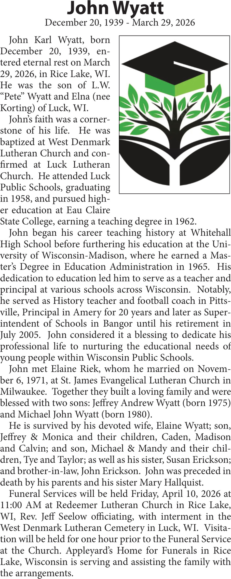 Apr 08, 2026. Obituaries Obituaries Ads from Rice Lake Chronotype