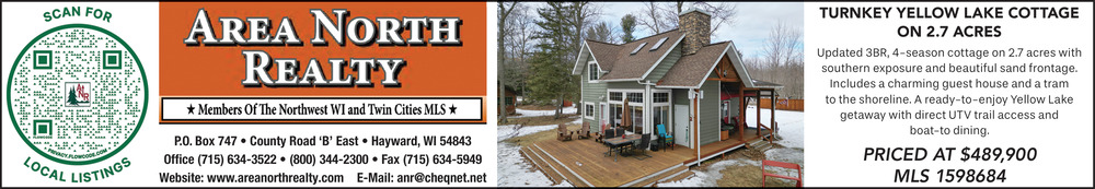 Apr 08, 2026. Area North Realty Real Estate Ads from Sawyer County Record