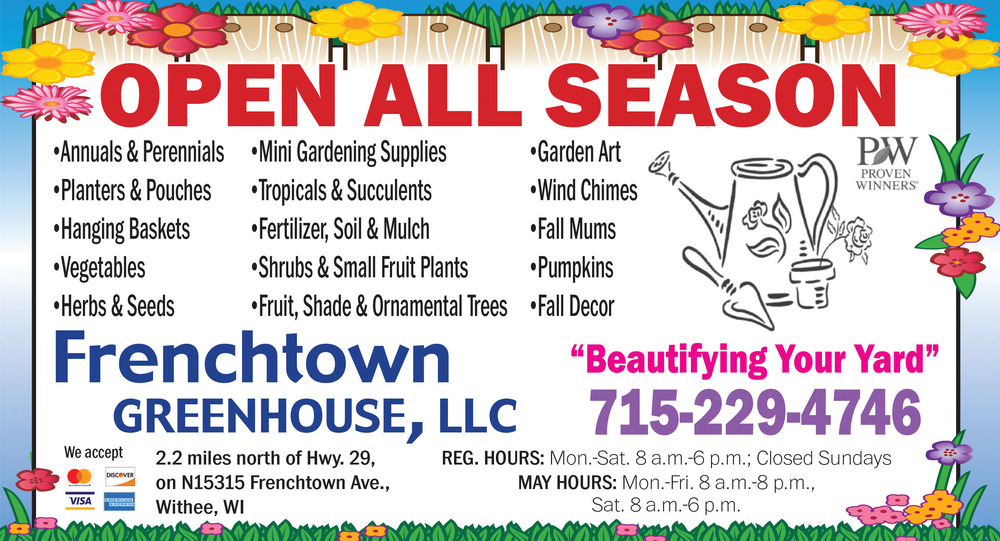 Apr 08, 2026. Frenchtown Greenhouse, LLC Plants Ads from Price County Review