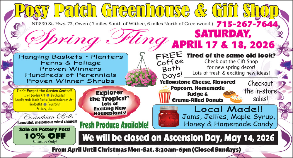 Ads for Posy Patch Greenhouse and Gift Shop in Owen, WI