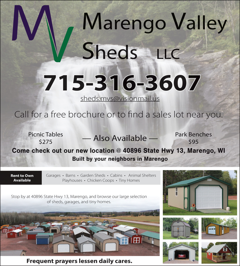 Ads for Marengo Valley Sheds LLC in High Bridge, WI