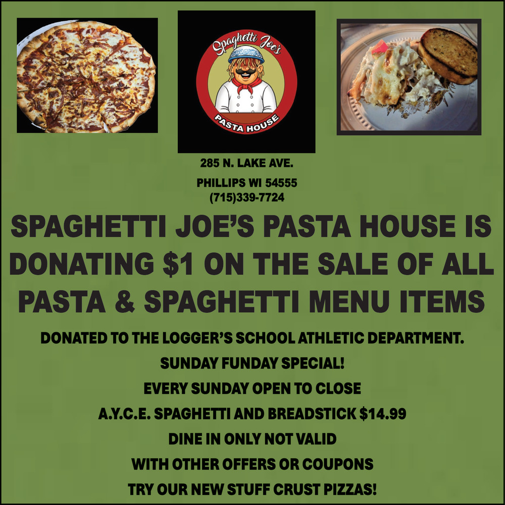 Ads for Spaghetti Joe's in NORTHWESTERN WISCONSIN