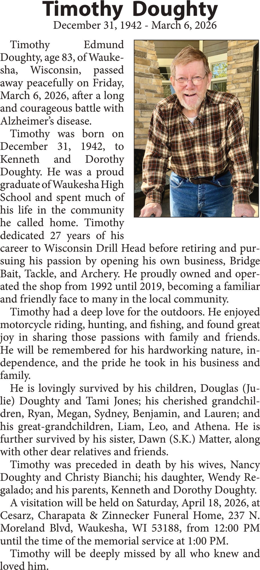 Obituary in NORTHWESTERN WISCONSIN