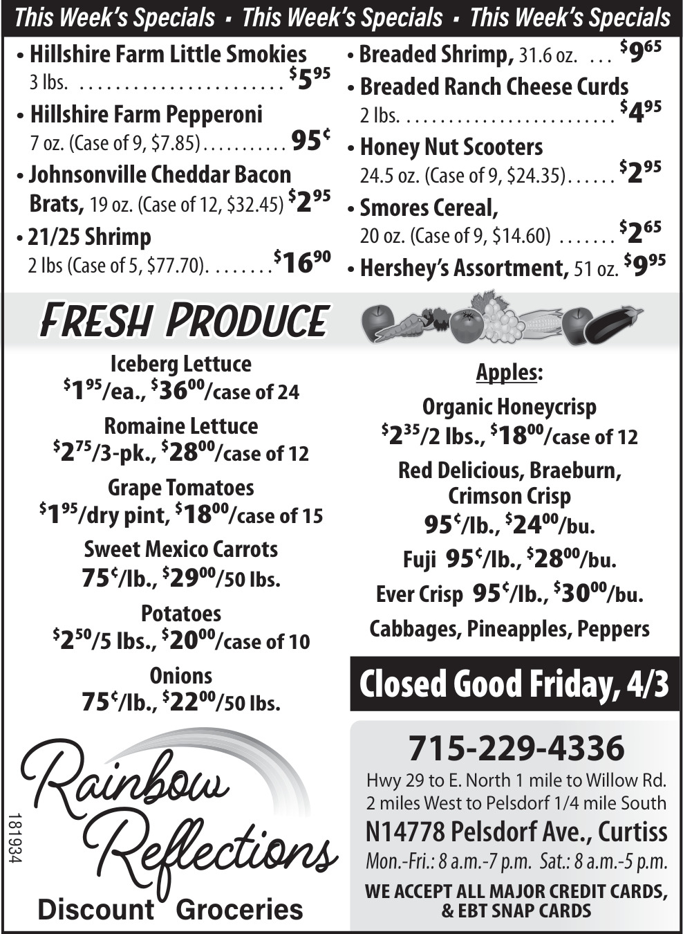 Apr 09, 2026. Rainbow Reflections - Curtiss Grocery Stores & Markets Ads from Price County Review