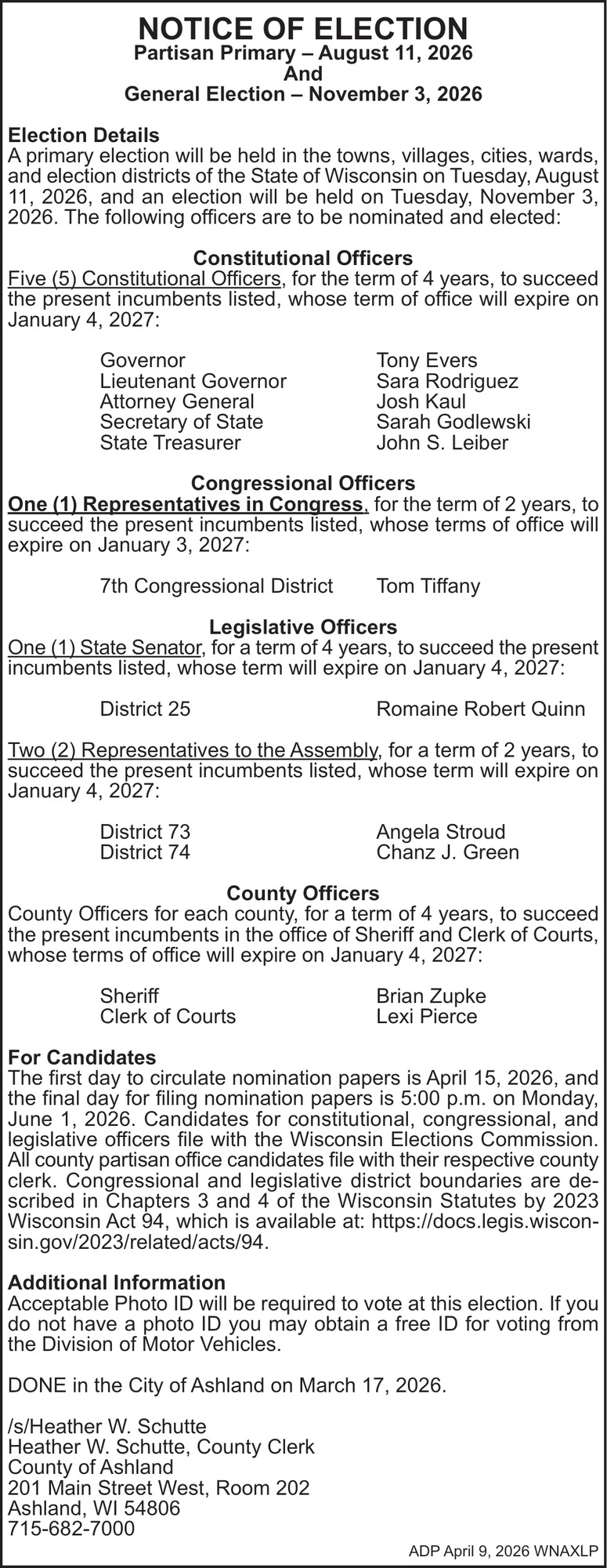 Apr 09, 2026. Ashland County Government Ads from Ashland Daily Press