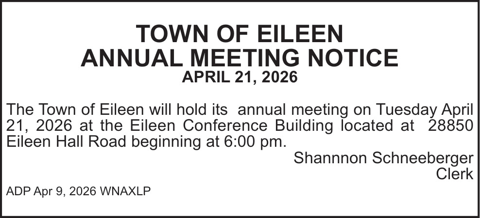 Apr 09, 2026. Town Of Eileen Public Notice Ads from Ashland Daily Press
