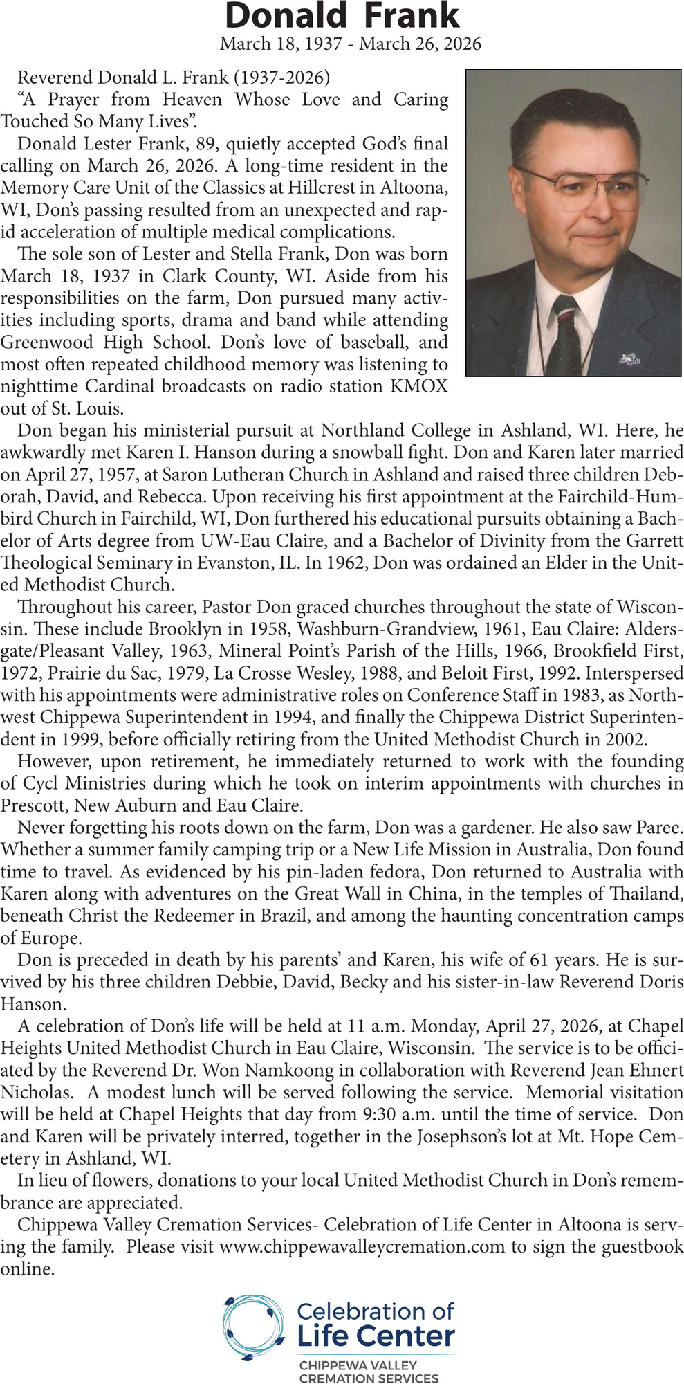 Obituary in NORTHWESTERN WISCONSIN