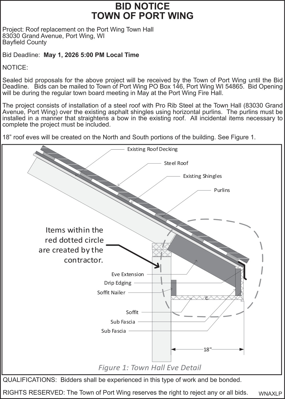 Apr 09, 2026. Town Of Port Wing Public Notice Ads from Ashland Daily Press