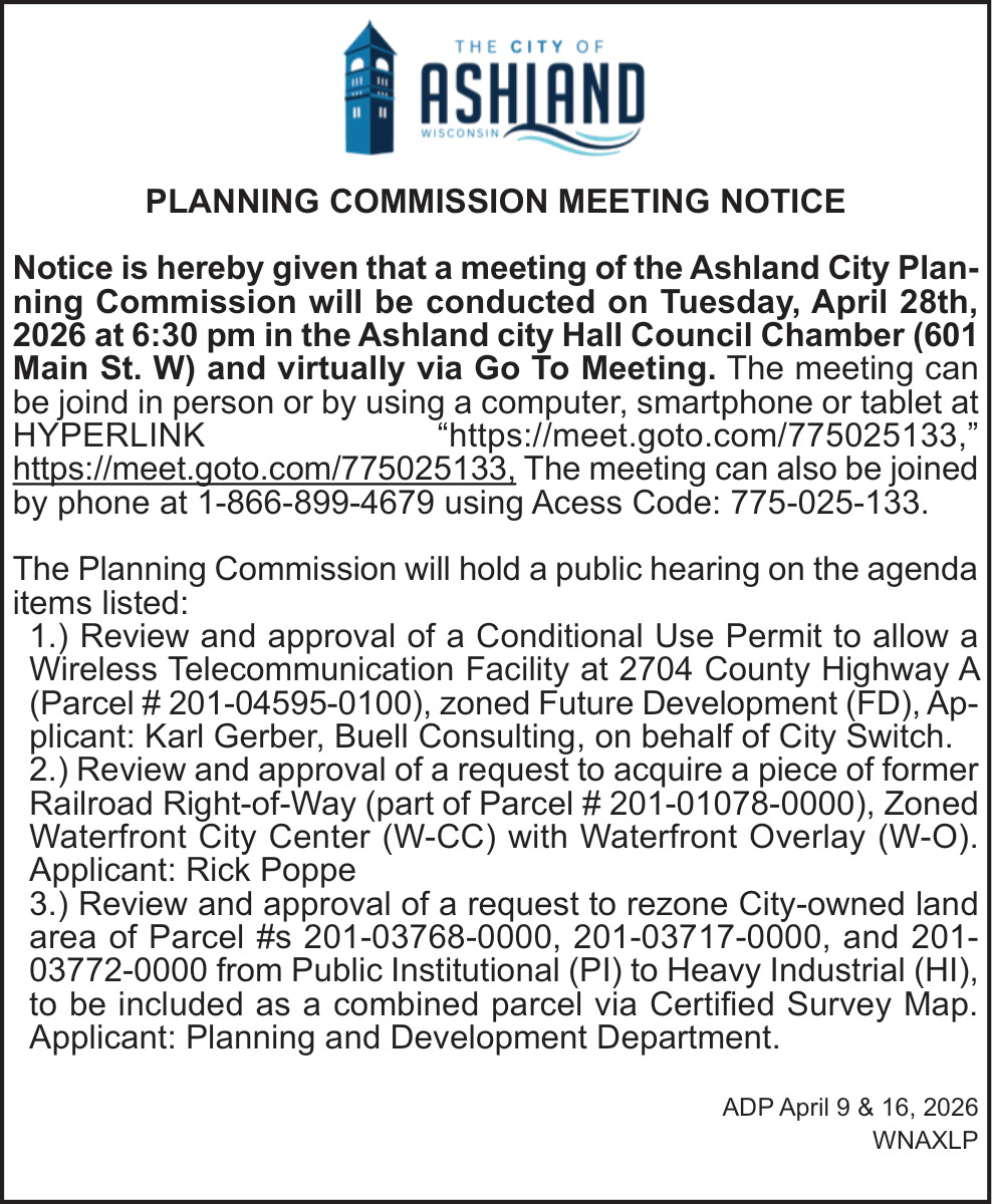 Apr 09, 2026. City Of Ashland Public Notice Ads from Ashland Daily Press