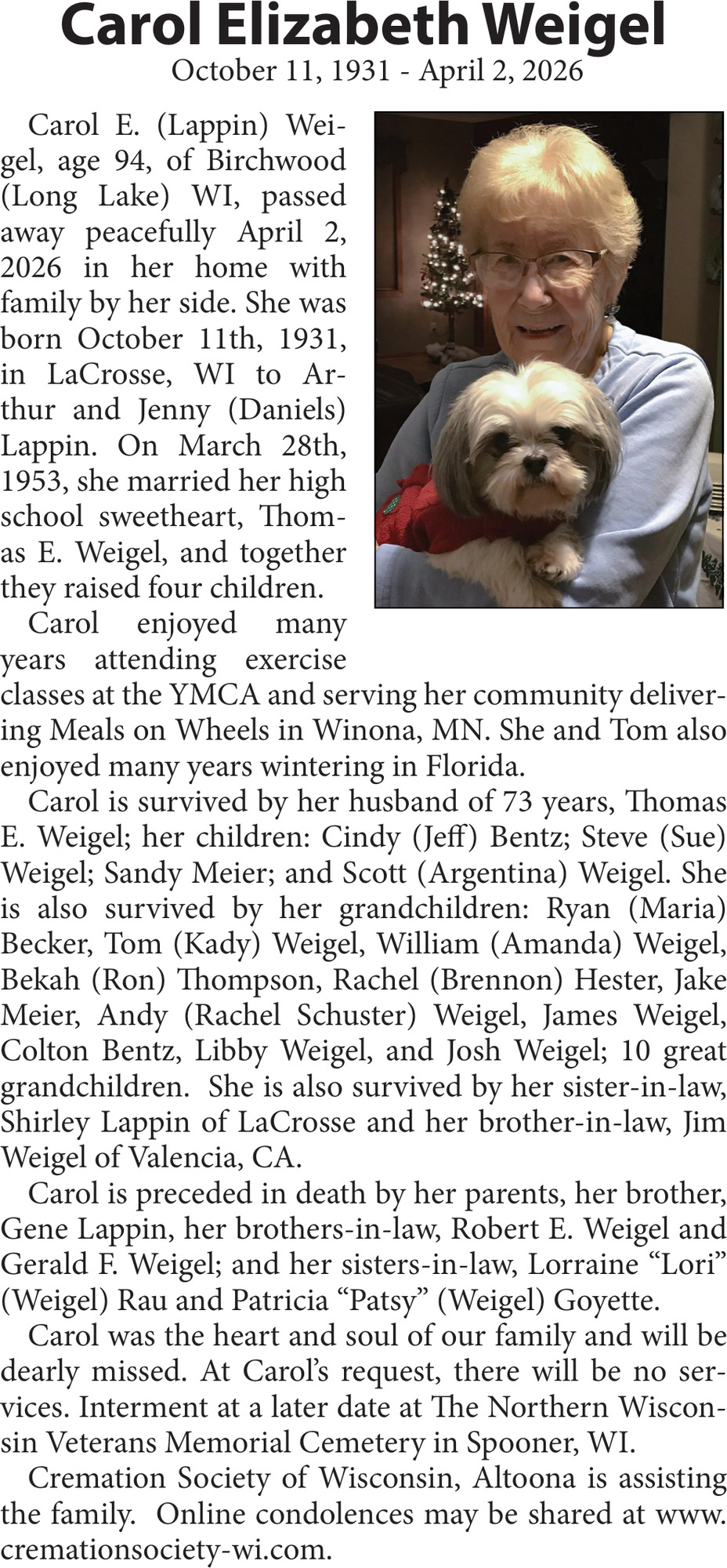 Apr 15, 2026. Obituaries Obituaries Ads from Rice Lake Chronotype