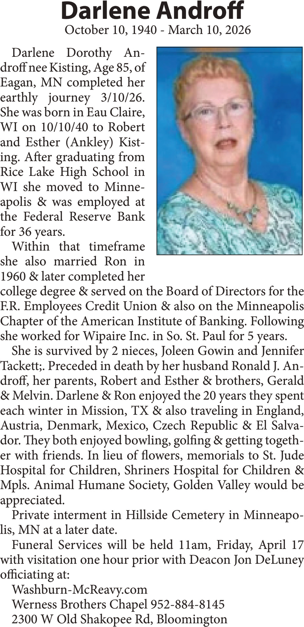 Obituary in NORTHWESTERN WISCONSIN