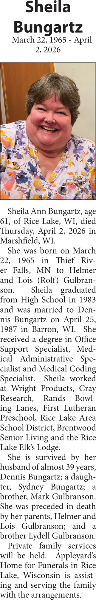 Apr 15, 2026. Obituaries Obituaries Ads from Rice Lake Chronotype