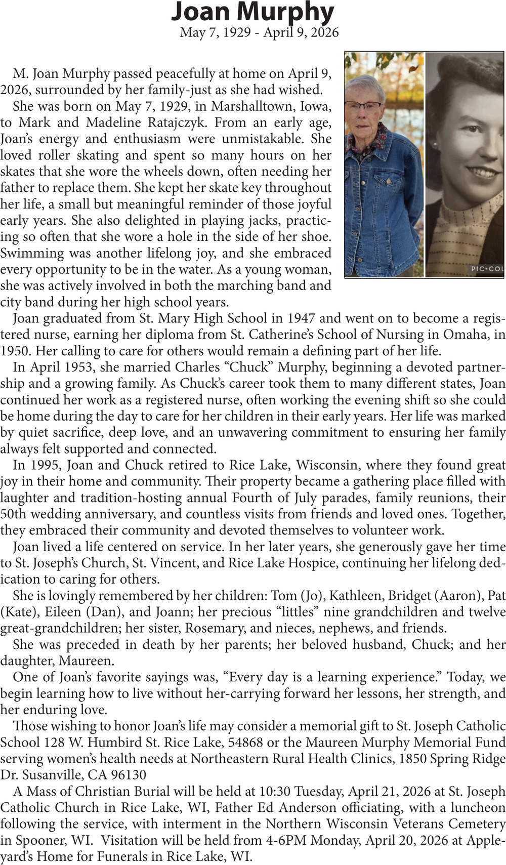 Apr 15, 2026. Obituaries Obituaries Ads from Rice Lake Chronotype