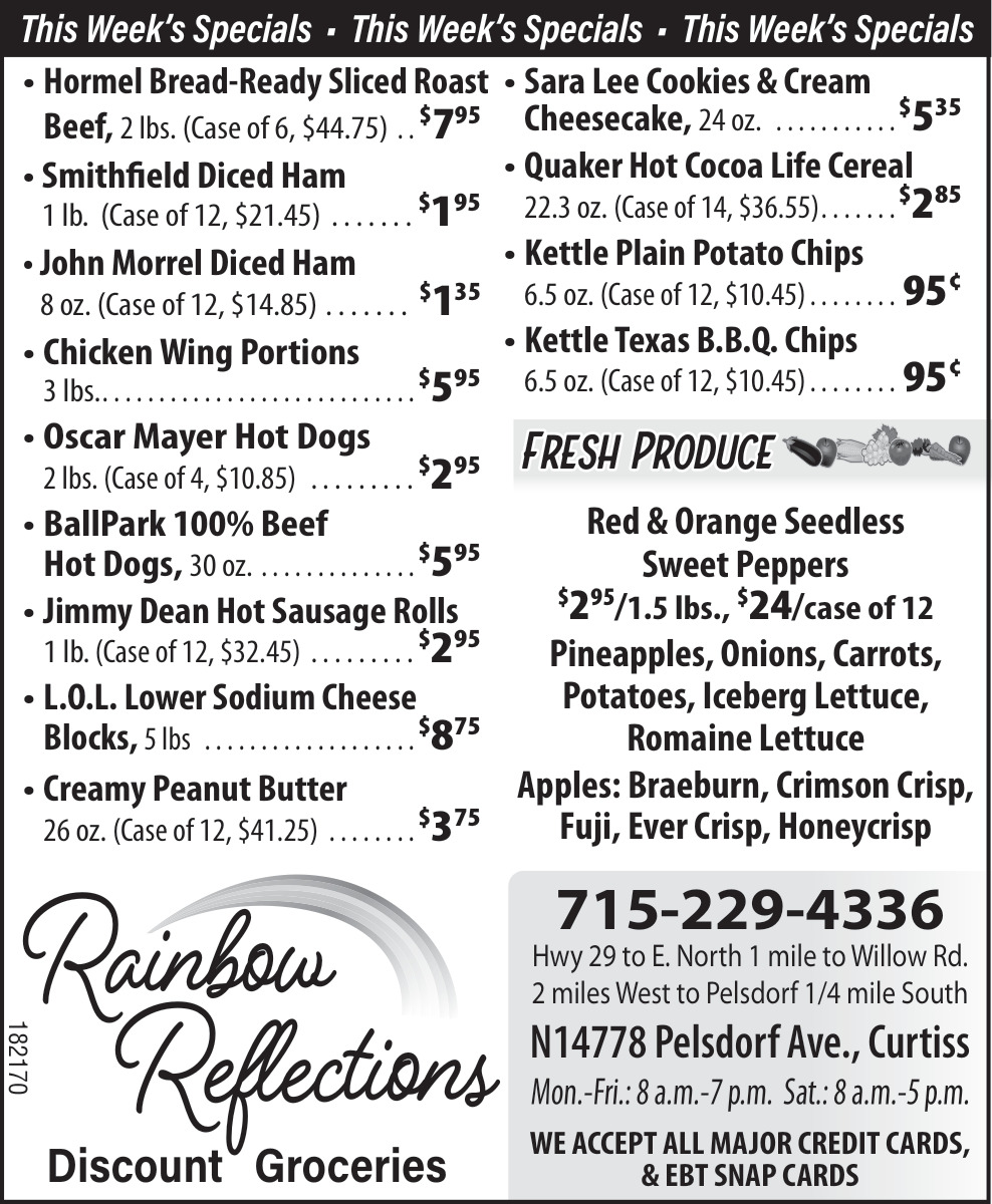 Apr 16, 2026. Rainbow Reflections - Curtiss Grocery Stores & Markets Ads from Price County Review