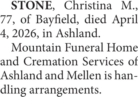 Apr 16, 2026. Christina M. Stone Obituaries Ads from Ashland Daily Press