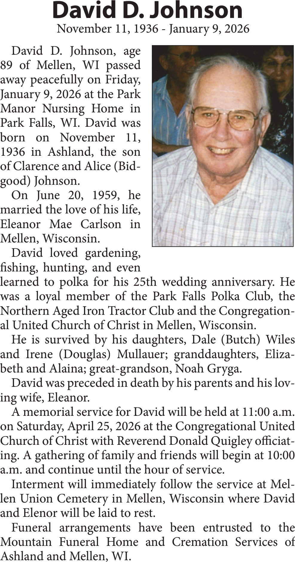 Obituary in NORTHWESTERN WISCONSIN
