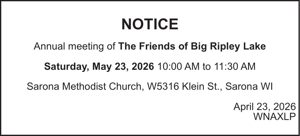 Ads for Annual Meeting Friends of Big Ripley Lake (May 23, 2026) in NORTHWESTERN WISCONSIN