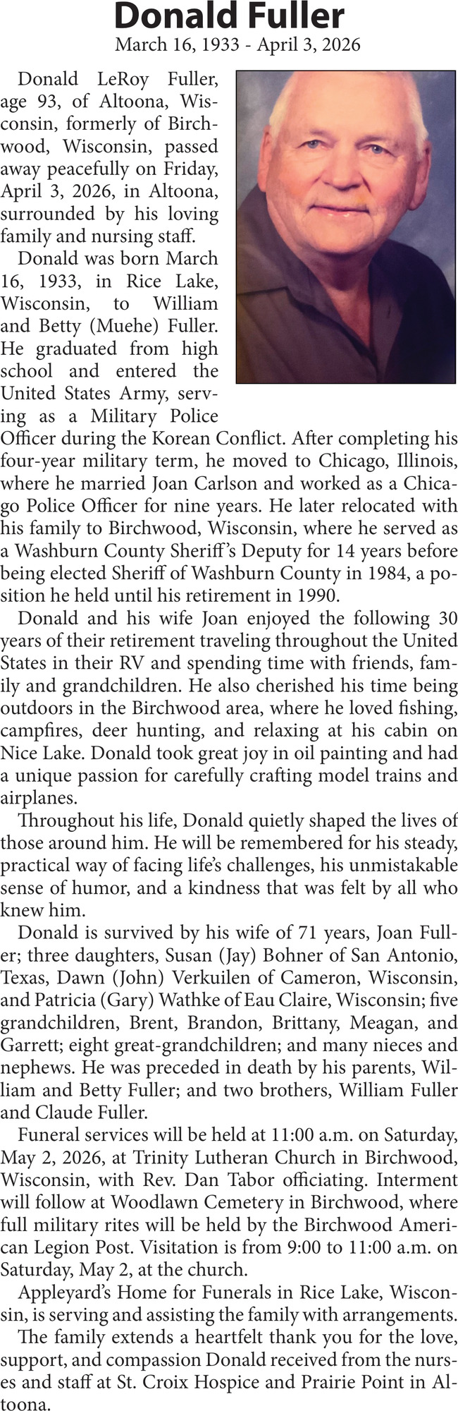 Obituary in NORTHWESTERN WISCONSIN