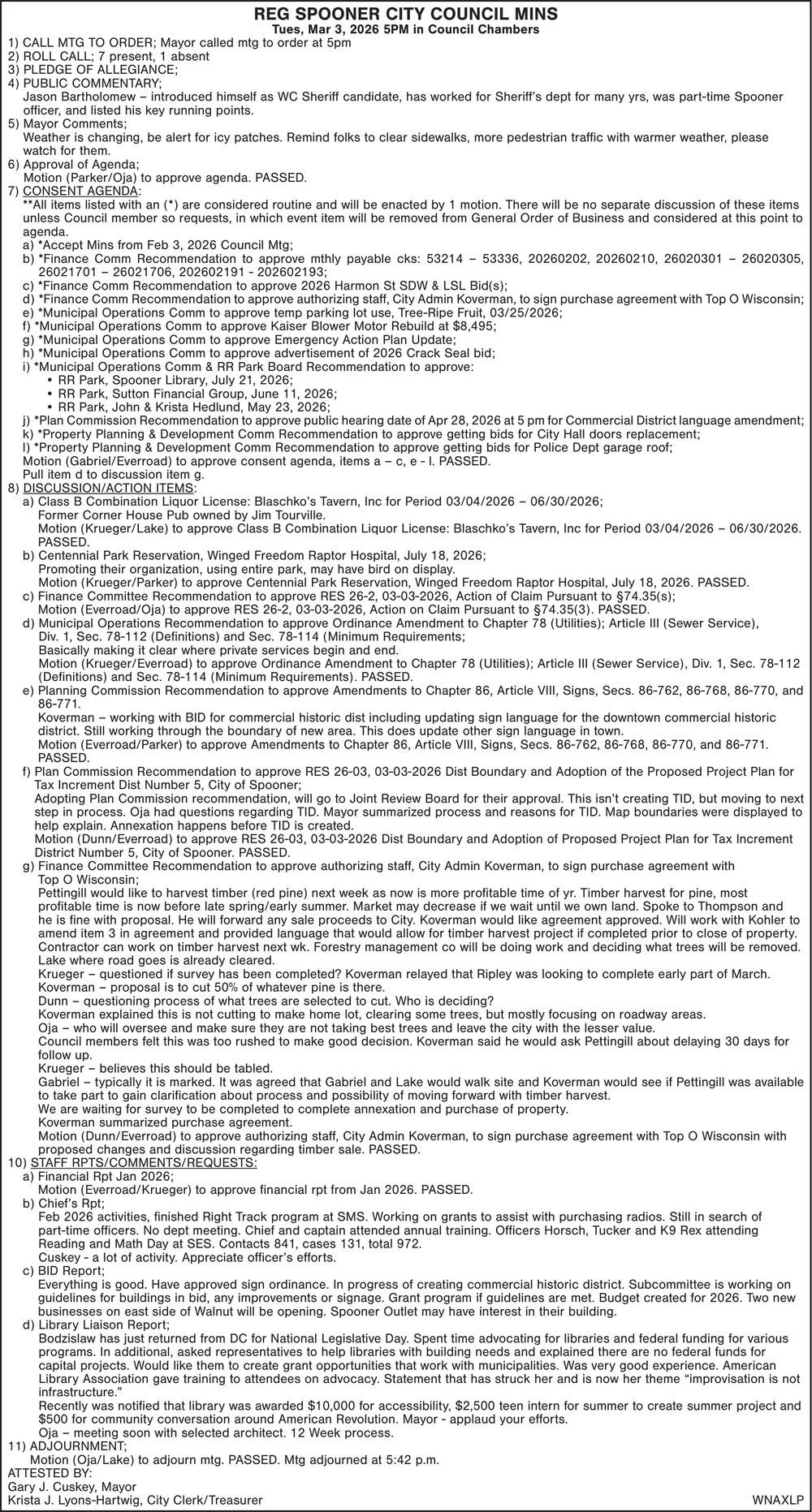 Apr 23, 2026. City of Spooner Public Notice Ads from Spooner Advocate