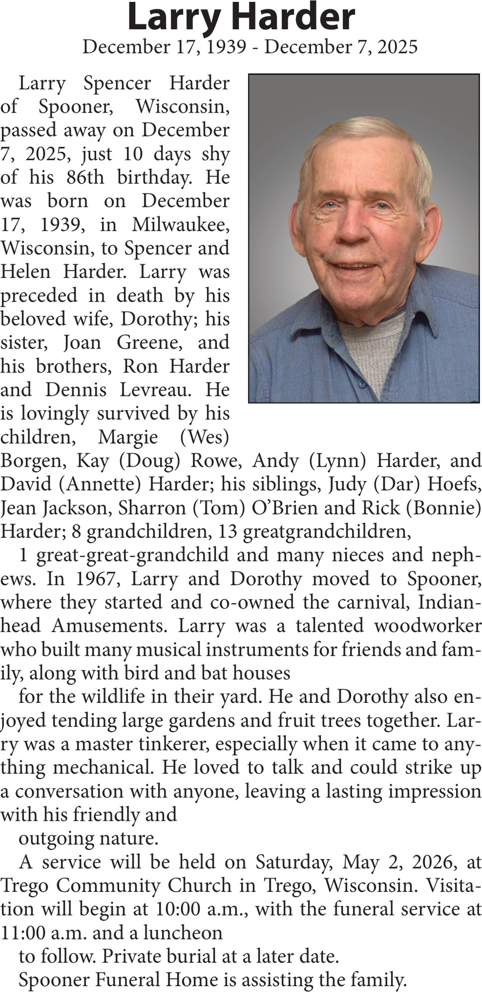 Obituary in NORTHWESTERN WISCONSIN