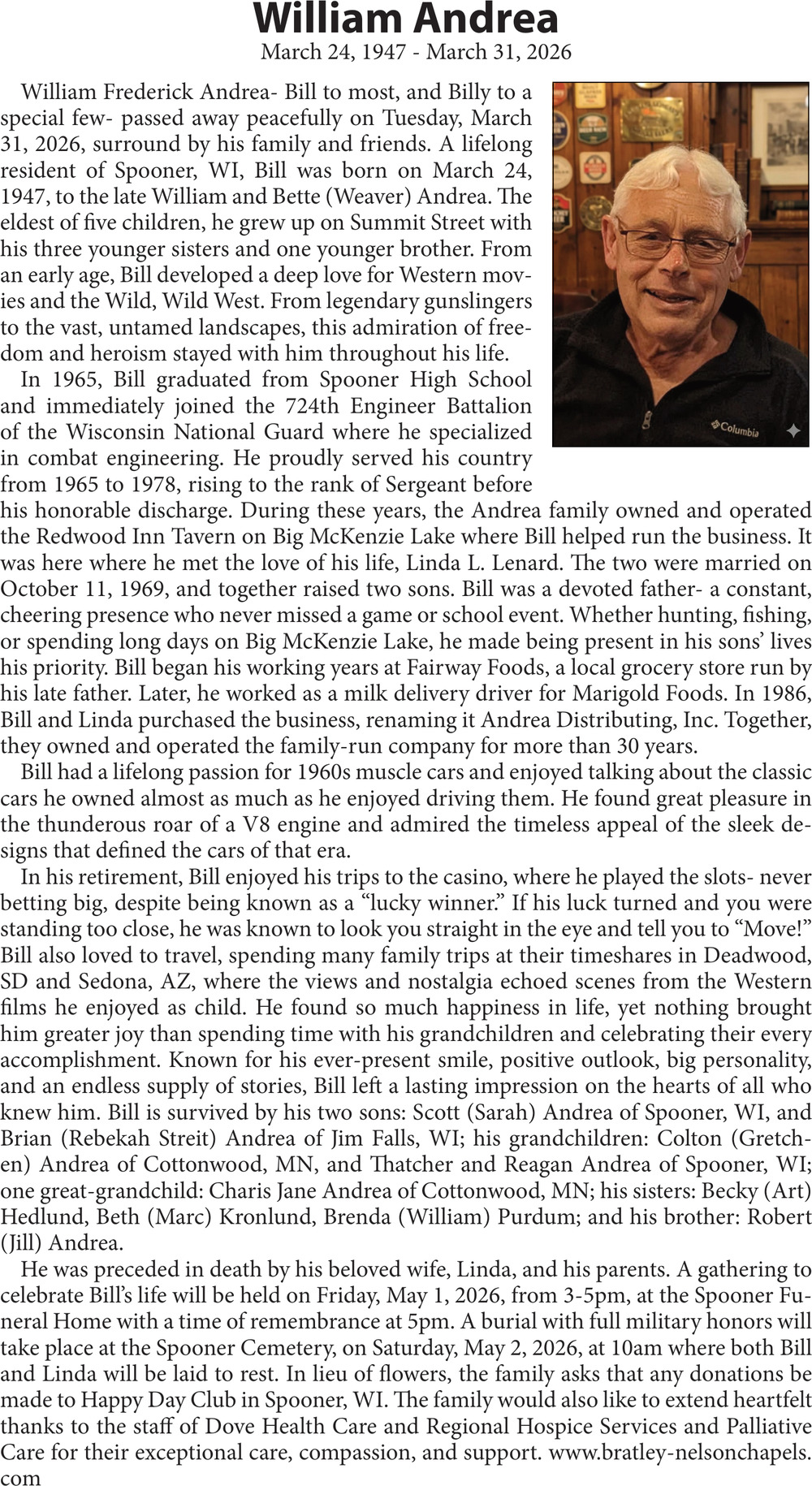 Apr 23, 2026. Obituaries Obituaries Ads from Spooner Advocate