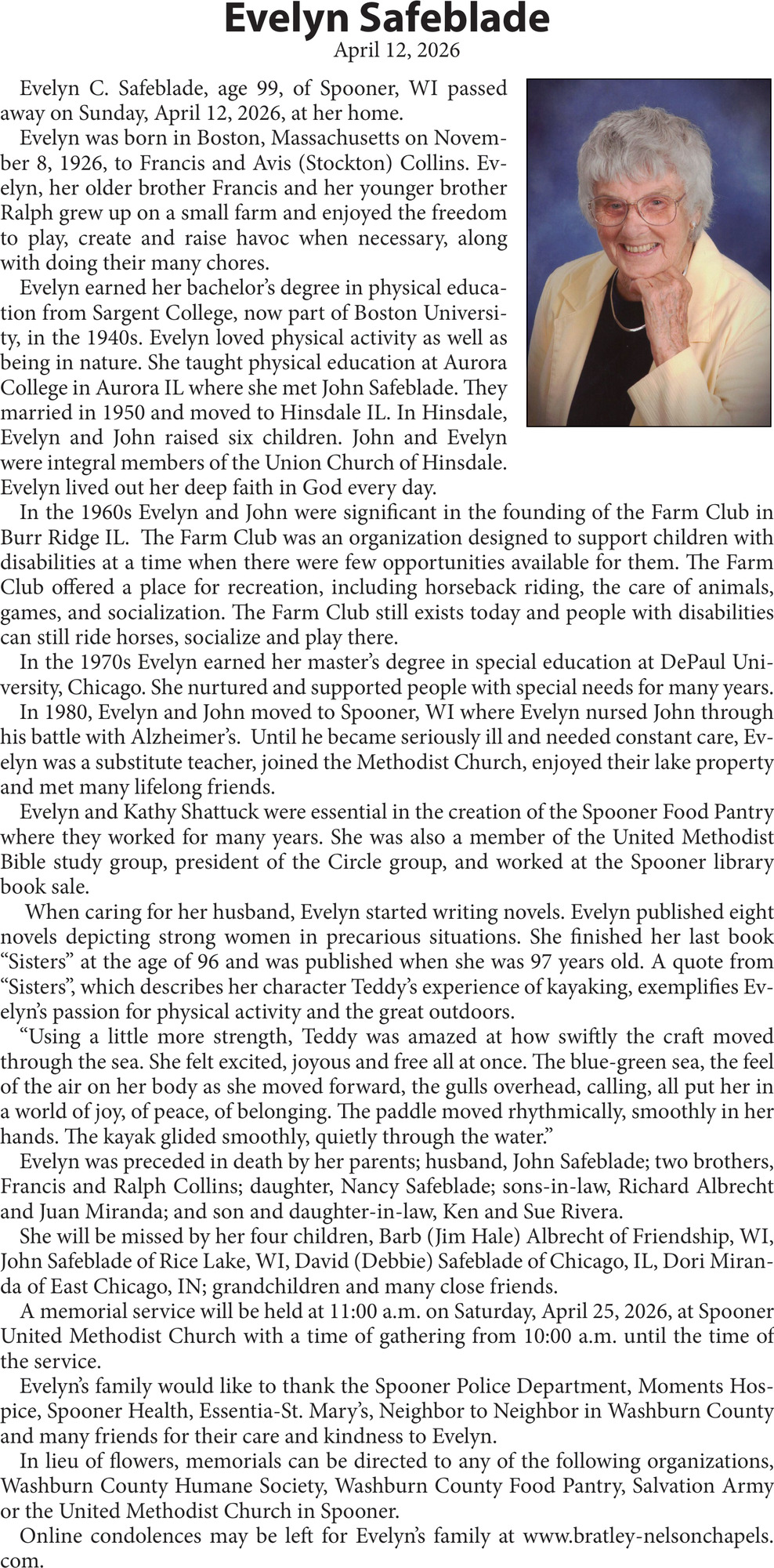 Obituary in NORTHWESTERN WISCONSIN